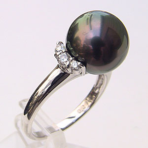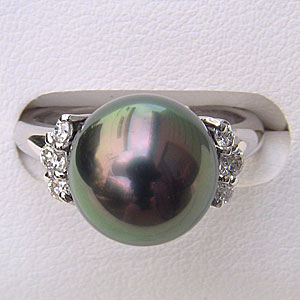 タヒチ黒蝶真珠 リング ダイヤモンド パール グリーン系 11mm PT900 プラチナ 指輪