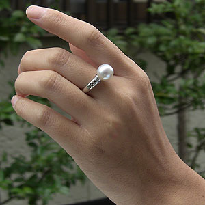 程よい大きさのパールをシンプルに、ストレートで幅広のしっかりしたウデのリングです。