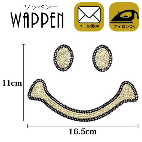 商品名 【メール便可】ストーン ワッペン アイロン接着 縦11cm×横16.5cm スマイル すまいる smile にこちゃん ニコちゃん キラキラワッペン アップリケ アイロンワッペン キャラクター 手芸 商品詳細 インパクト抜群!光に反射しキラキラ光るストーンワッペン ワッペンをスマホケース、バッグやポーチなどに貼り付けて 自分だけのオリジナルデザインを作り出すことができます! アイロンで貼り付け可能!もちろん接着剤での貼り付けも可能! 簡単にリメイクすることができちゃいます。