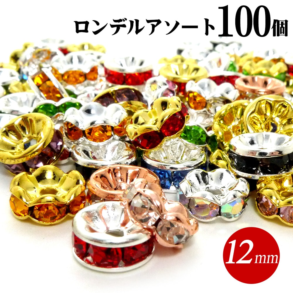 ロンデル アソート 12mm 100個 平ロンデル 波ロンデル ゴールド シルバー ピンクゴールド 金色 銀色 アクセサリー パーツ ハンドメイドパーツ ラインストーン 平型 波型 スペーサー ビーズ 天然石 パワーストーン ブレスレット